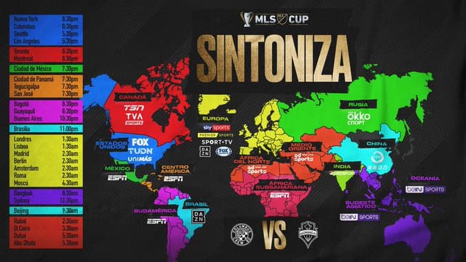 Aquí pueden encontrar la información de cómo y donde pueden ver la Final de la #MLSCup desde cualquier lugar del mundo.🗺 pic.twitter.com/Ev18HcC7VJ