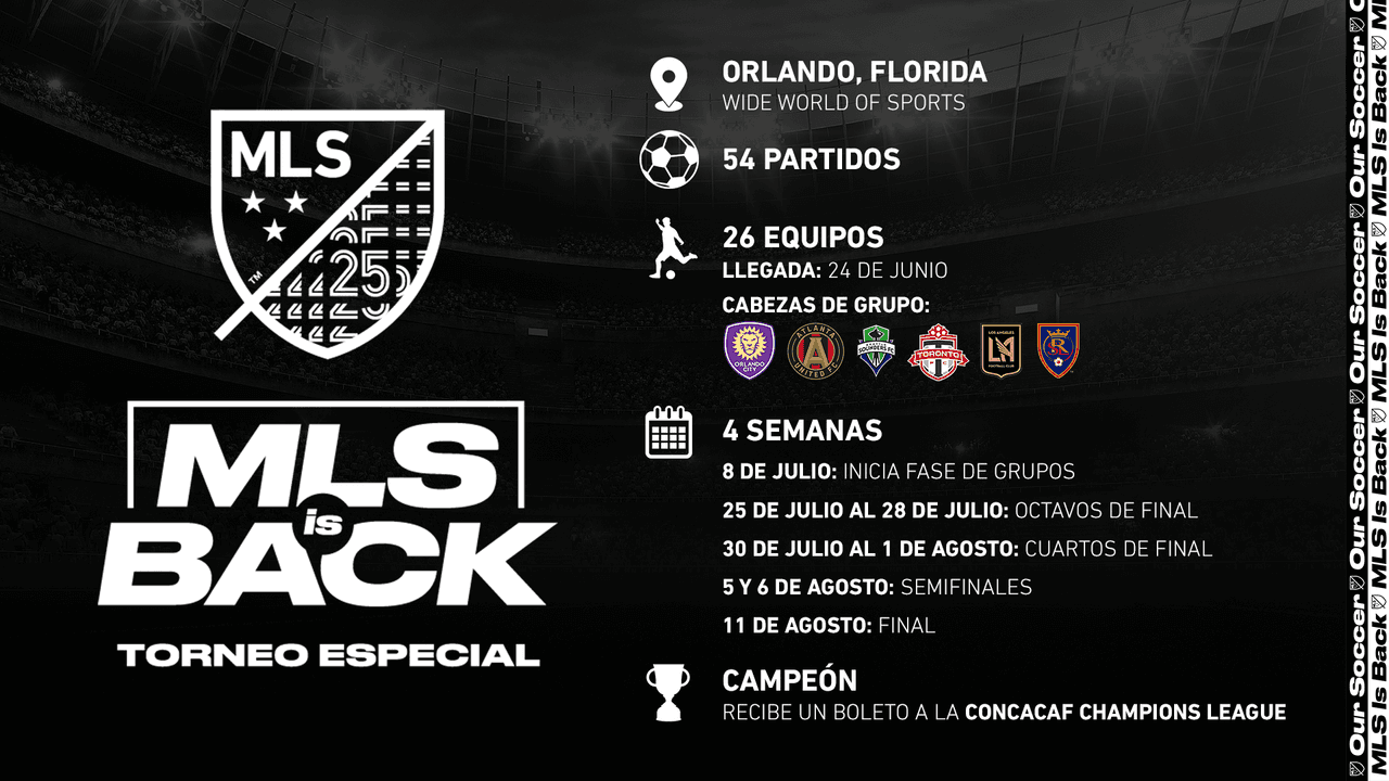 Este torneo especial, que será disputado sin aficionados en las gradas, le permite a la MLS retornar a la competencia en su Temporada 25 de una forma emocionante: los puntos obtenidos en partidos de la fase de grupos se sumarán a la clasificación de la temporada regular de la MLS. También se revelaron fechas, reglamentos, protocolos y el formato para el sorteo de grupos.
