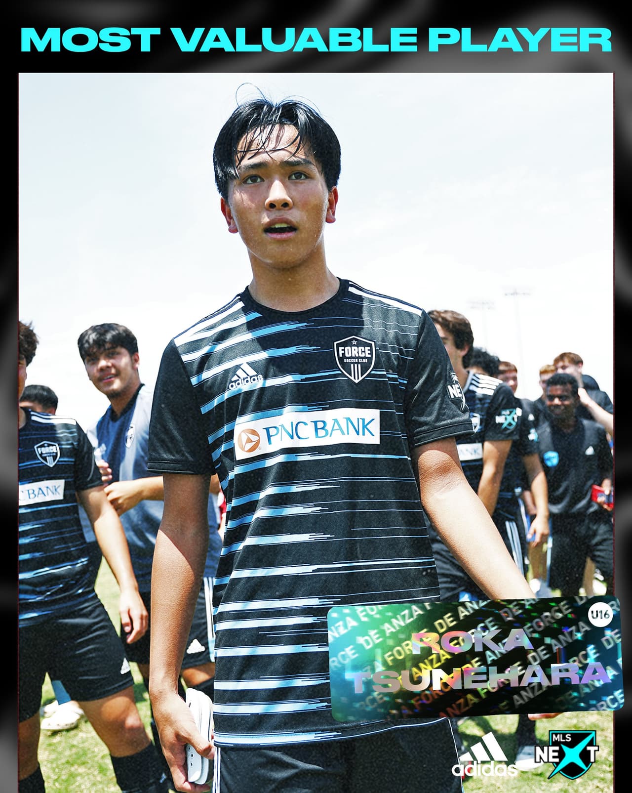 El delantero Roka Tsunehara fue la estrella de De Anza Force esta temporada, anotando 25 goles en 24 partidos en el transcurso de la temporada 2021-22. De Anza dominó la temporada regular Sub-16, registrando 42 puntos, el máximo de la división de edad, y promediando más de cuatro goles marcados por partido. El siempre consistente Tsunehara brilló en los 2022 MLS NEXT Cup Playoffs cuando anotó cuatro goles en la misma cantidad de partidos para llevar a Force a una aparición en semifinales. Su habilidad innata para encontrar la red en situaciones difíciles fue evidente en el partido de cuartos de final de la MLS NEXT Cup Playoffs contra Weston FC, cuando anotó un tiro penal decisivo en el minuto 90 para impulsar a De Anza a las semifinales.