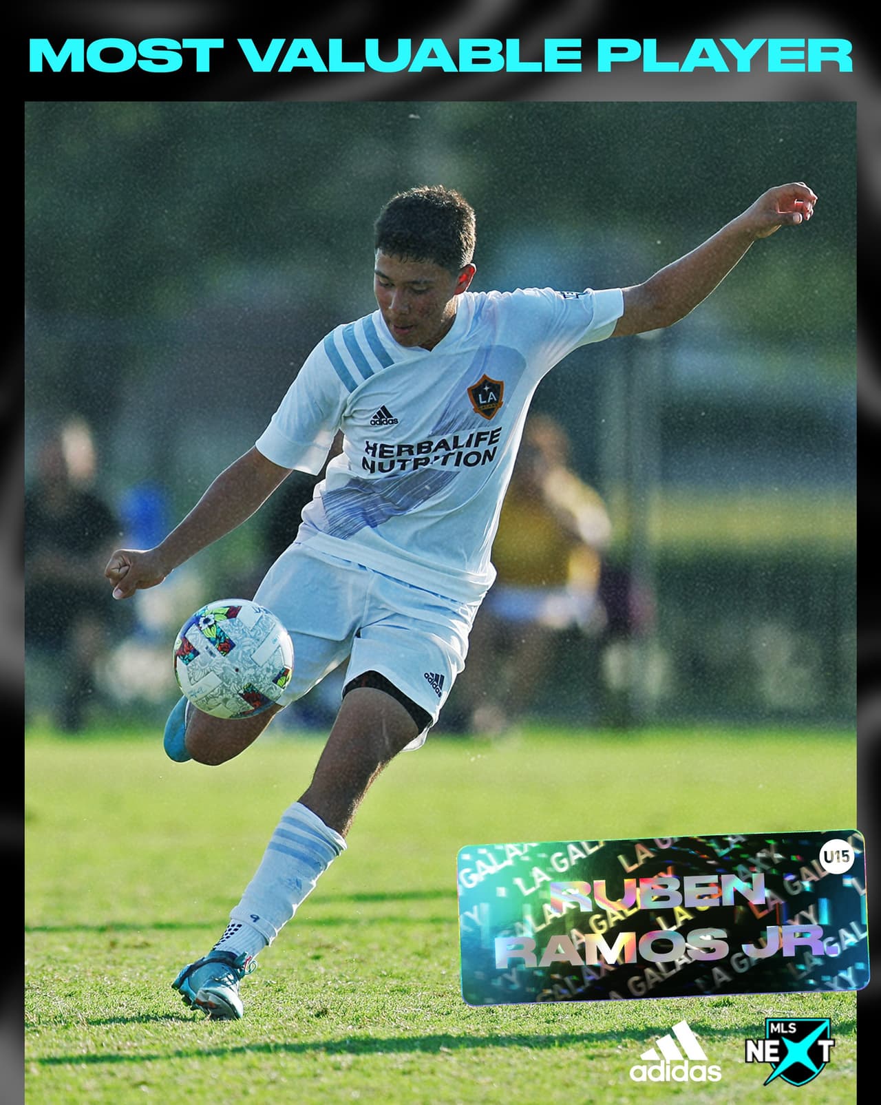 Rubén Ramos Jr. se convierte en el segundo jugador consecutivo de LA Galaxy en ganar el MVP Sub-15 MLS NEXT presentado por adidas, uniéndose a Paulo Rudisill, quien lo obtuvo la temporada pasada. Ramos Jr. tuvo una excelente temporada anotadora para el Galaxy, produciendo 24 goles en la misma cantidad de partidos en el transcurso de la temporada. El delantero se destacó en el MLS NEXT Flex cuando llevó al Galaxy a un récord de 3-0-0, anotando cinco veces en el torneo. Ramos Jr. también anotó un triplete en la segunda mitad en uno de los partidos para ayudar al equipo a clasificarse para los 2022 MLS NEXT Cup Playoffs. En el evento que culminó la temporada, Ramos Jr. anotó tres veces en cuatro partidos, lo que ayudó a LA a llegar a la semifinal por primera vez en la historia del club.