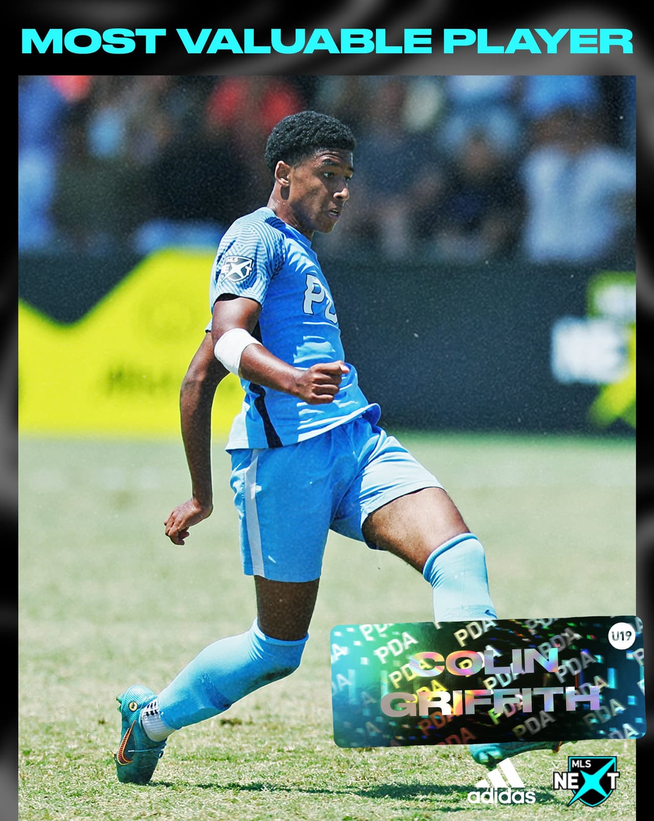 Un goleador puro, Colin Griffith de PDA fue uno de los delanteros más peligrosos de toda la MLS NEXT durante la temporada 2021-22, anotando 28 goles en solo 18 partidos. El futuro Maryland Terrapin, Griffith fue una fuerza impulsora para ayudar a PDA a promediar 4.22 goles por partido (38 en total), el mejor promedio de la categoría sub-19. En los Playoffs de la MLS NEXT Cup de 2022, Griffith registró tres goles, incluidos dos en el partido de octavos de final contra Sockers FC que ayudaron a PDA a alcanzar los cuartos de final. El delantero ha representado a las Selecciones Nacionales Juveniles de Barbados y apareció en el Campeonato Masculino Sub-15 de la Concacaf en 2019.