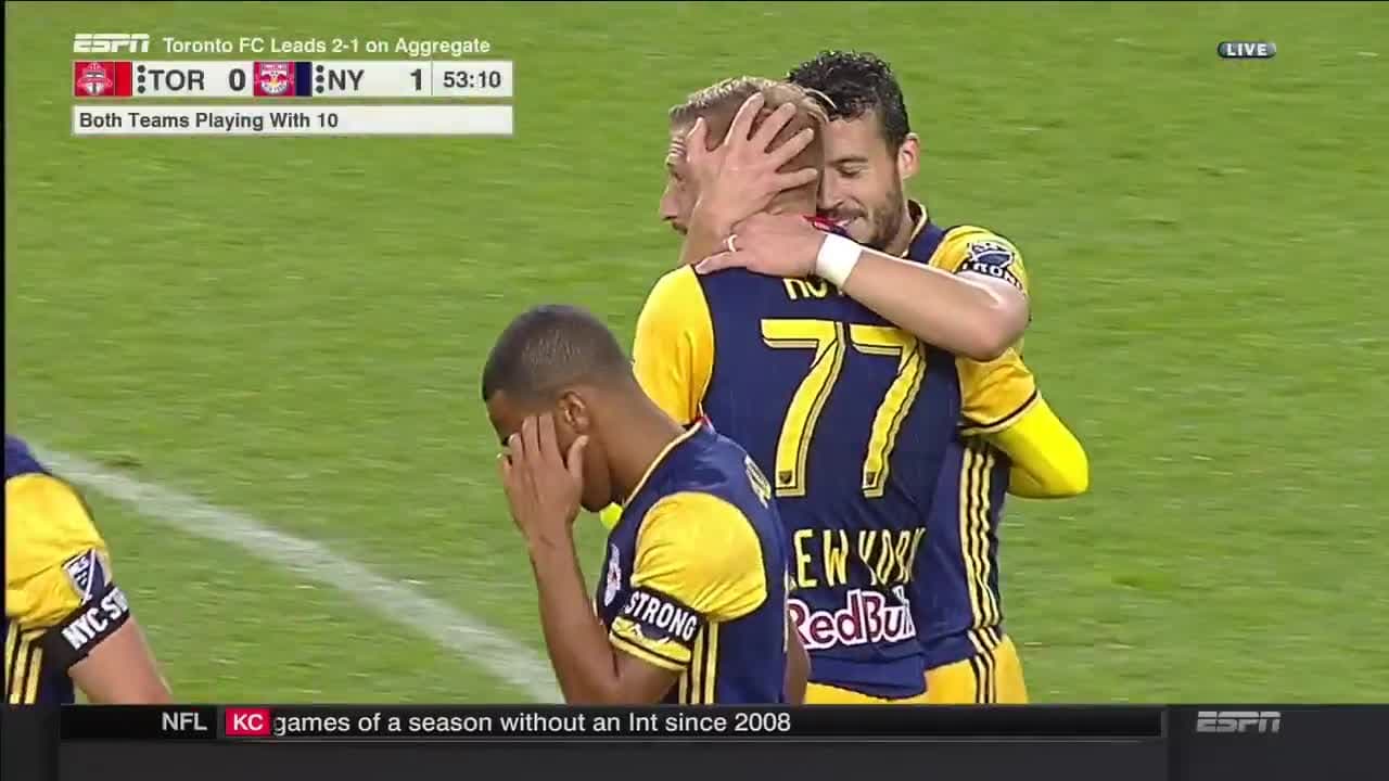 Los dos goles que Toronto FC anotó en Red Bull Arena el lunes pasado definieron la serie contra New York Red Bulls a favor de los canadienses. Los neoyorquinos vencieron 1-0 en el partido de vuelta para dejar la serie empatada 2-2. El desempate se lo llevó TFC por anotar más goles de visitante.