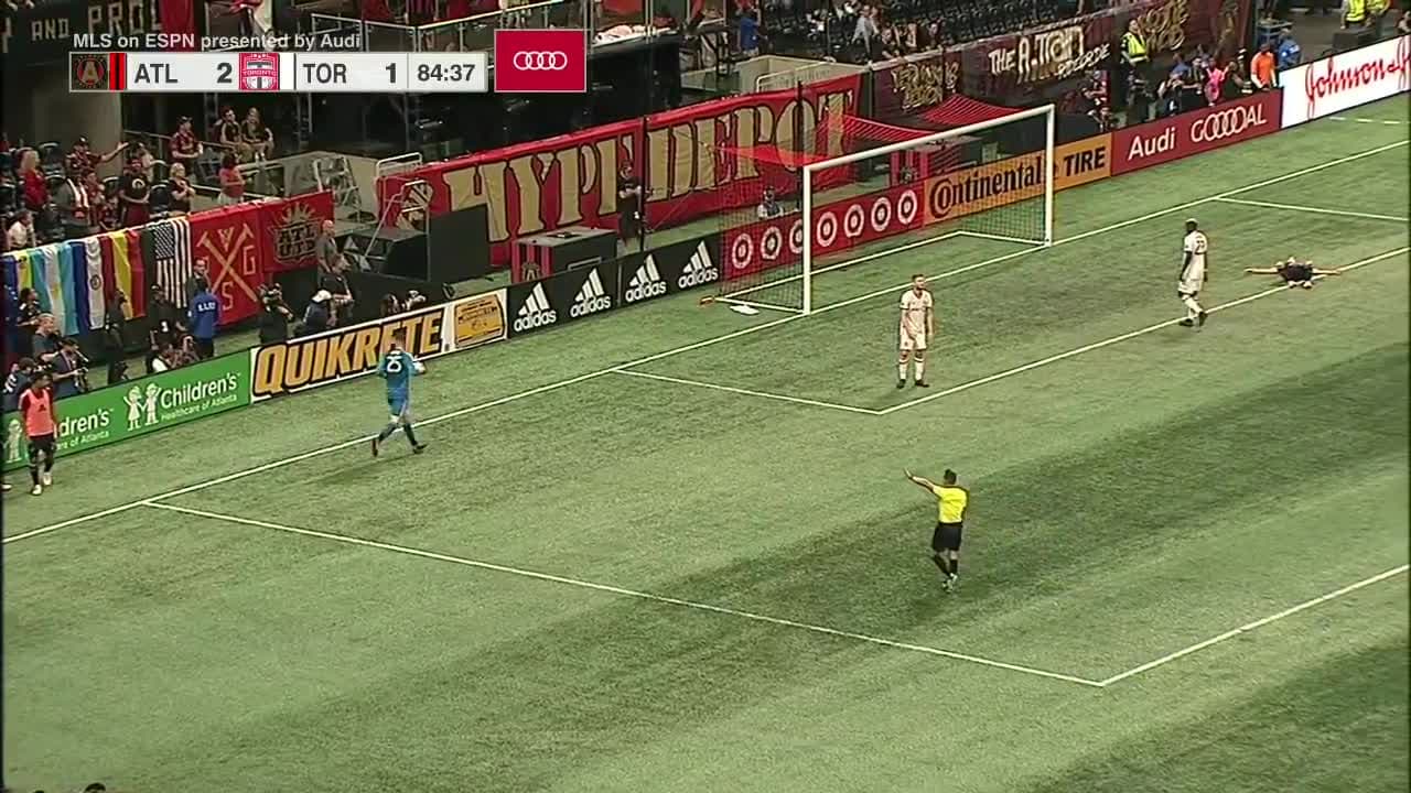 El paraguayo Miguel Almirón estuvo cerca de marcar el tercer gol de Atlanta, pero una gran atajada del portero impidió el gol.