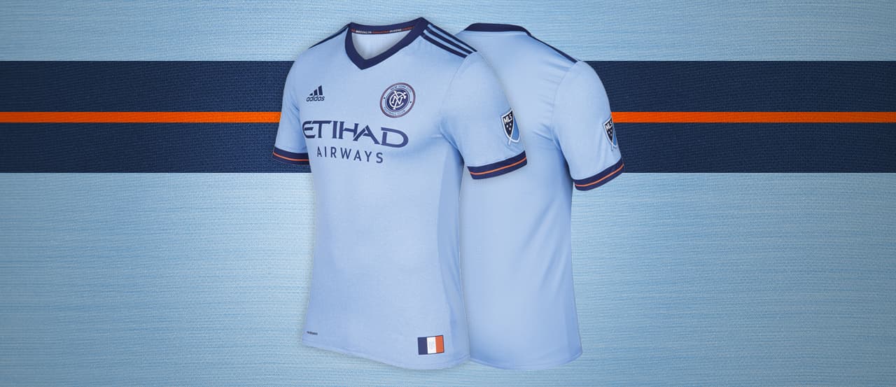La nueva camiseta principal de NYCFC, la segunda en la historia de la franquicia, se caracteriza por su azul celeste y por tener la bandera de la Ciudad de Nueva York. Fans de NYCFC tambien podrán encontrar los nombres de los cinco condados de Nueva York en el revés del collar de la camiseta.