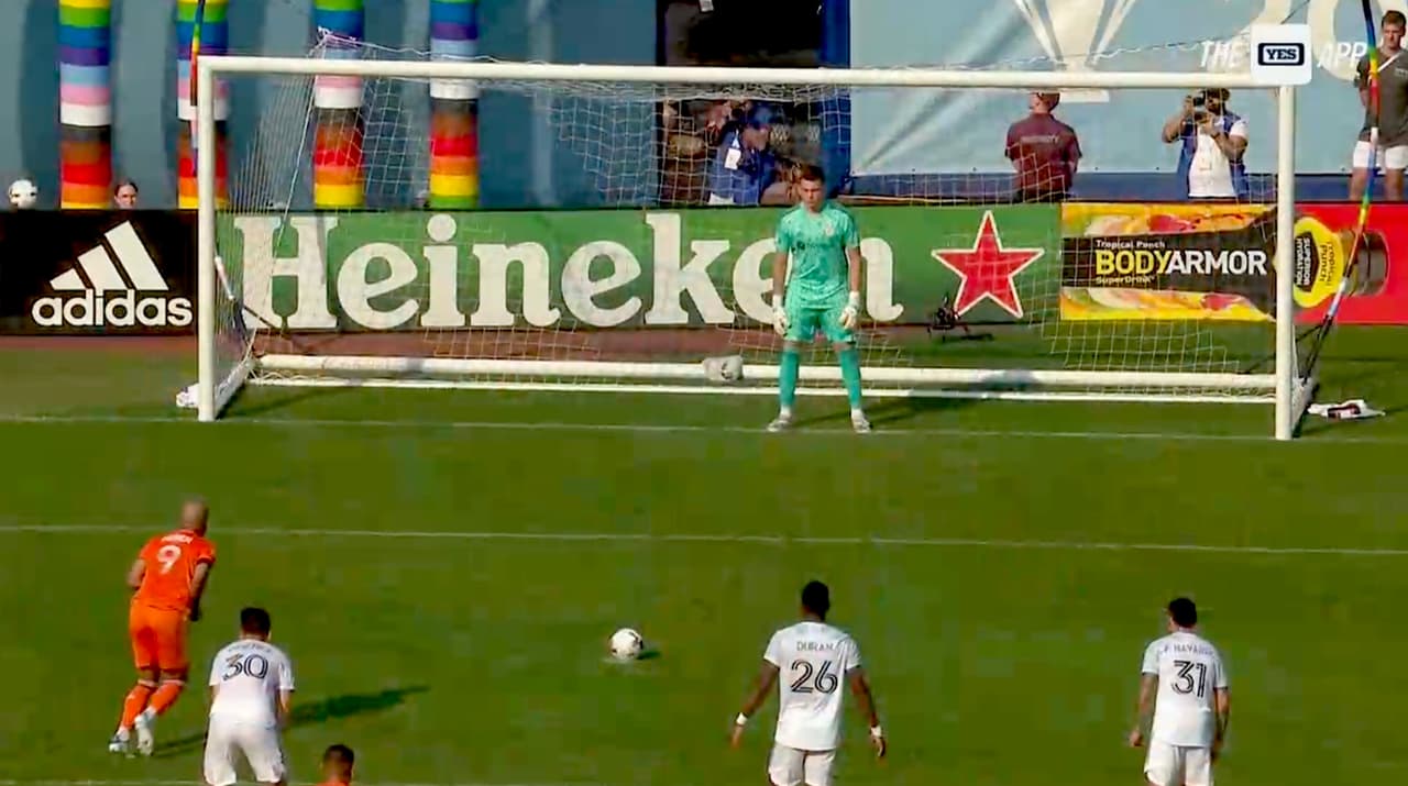 Las acciones estaban igualadas, pero al minuto 20 los locales reclamaron penal de Miguel Navarro. Una mano del defensor derivó, tras la intervención del VAR, en la señalización del tiro desde los 11 pasos a favor de los campeones reinantes de la MLS.