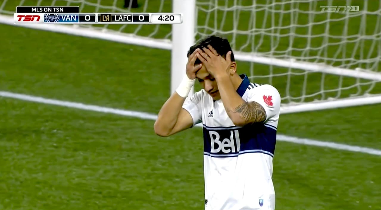 El delantero colombiano tuvo en sus pies el primer gol de Vancouver Whitecaps, pero mandó el balón por un lado de la portería de Pablo Sisniega.