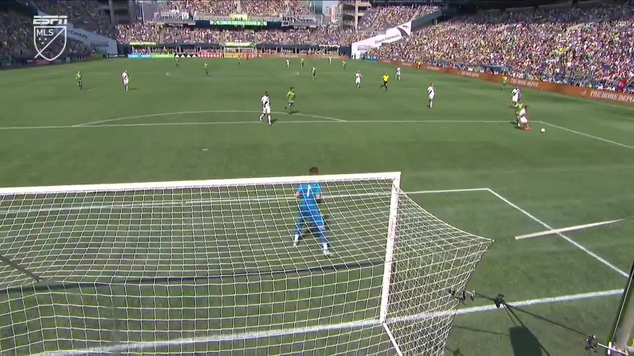 El mediocampista uruguayo vuelve a lucirse con una gran carrera hacia el área de los californianos, saca el centro y el balón se desvía para el tercero de los Sounders.