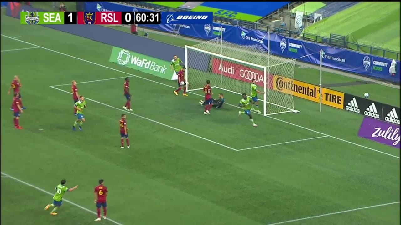 En jugada de pelota detenida, el uruguayo filtró la pelota en el área donde su compañero cabecea y anota para aumentar la ventaja sobre Real Salt Lake
