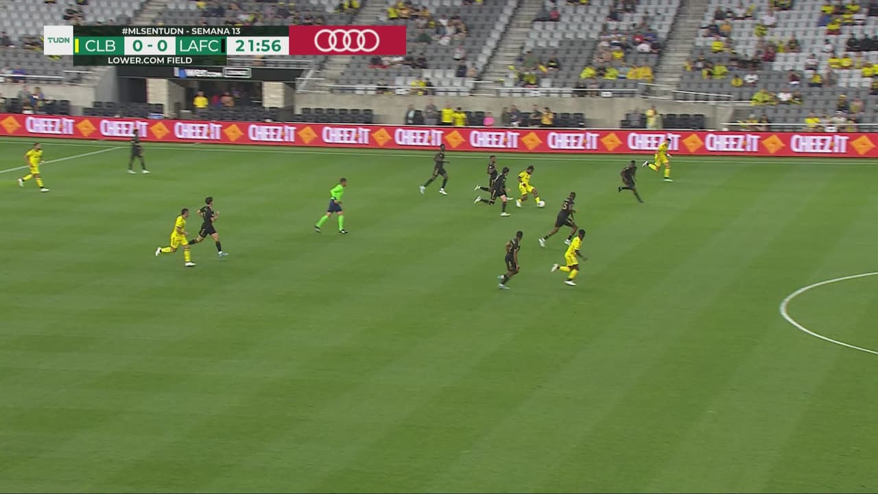 El pase a profundidad y el nigeriano se encuentra adelantado unos pasos, ya tenía la ventaja, al 22'.