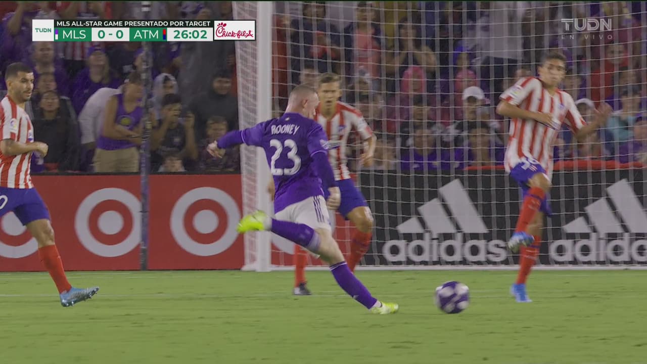 La calidad individual de los jugadores de Major League Soccer comenzó a hacerse notar sobre la mitad del primer tiempo, con buenos movimientos de Vela y Rooney. En el 26' el inglés lanzó un misil de larga distancia con capacidad de dañar a la visita ibérica.
