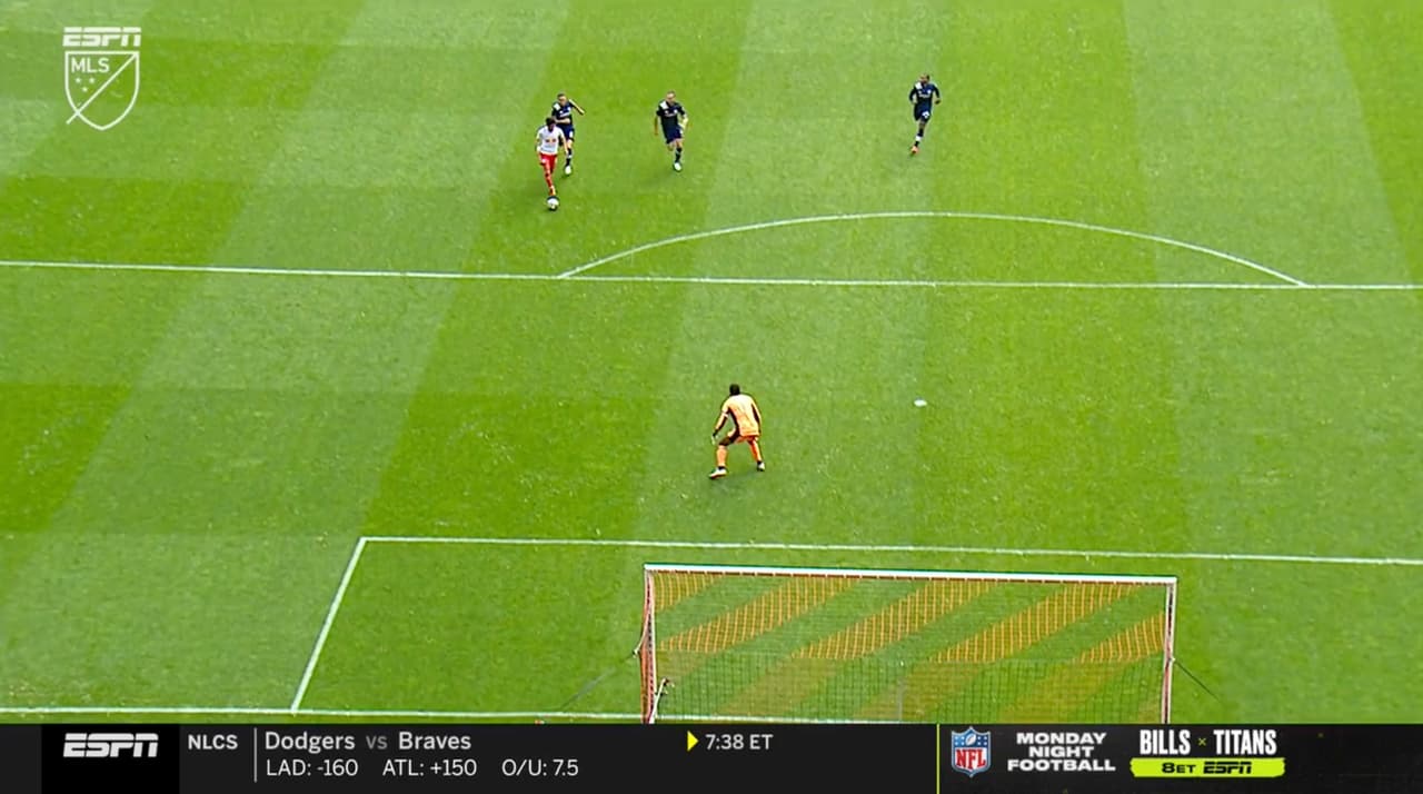 En la última del primer episodio, NYCFC tuvo su primera gran chance para hacerse presente en el marcador. El uruguayo Santiago Rodríguez remato solo de primera intención en el área, pero Carlos Coronel le ahogo el grito de gol con su atajada.