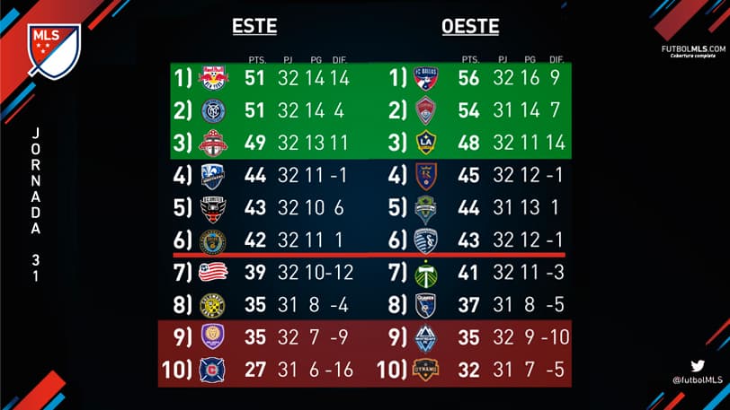 Los Seattle Sounders y el LA Galaxy serán los encargados de cerrarle el paso a FC Dallas, quienes tienen 56 puntos y las mayores opciones de quedarse con el título. Por su parte, San Jose Earthquakes y Houston podrían hacerle el daño a Colorado Rapids (54 puntos).