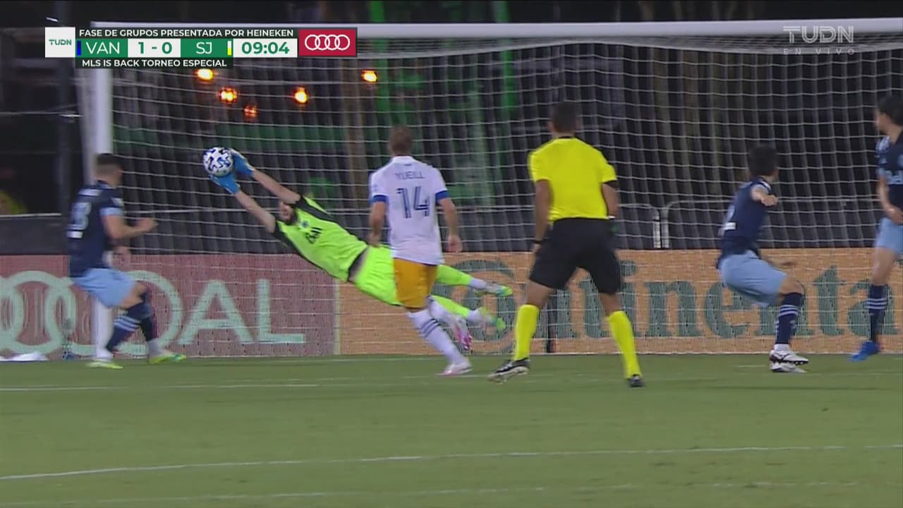 El portero del equipo de Vancouver se lució con esta atajadota luego del potente disparo del volante de los Earthquakes.