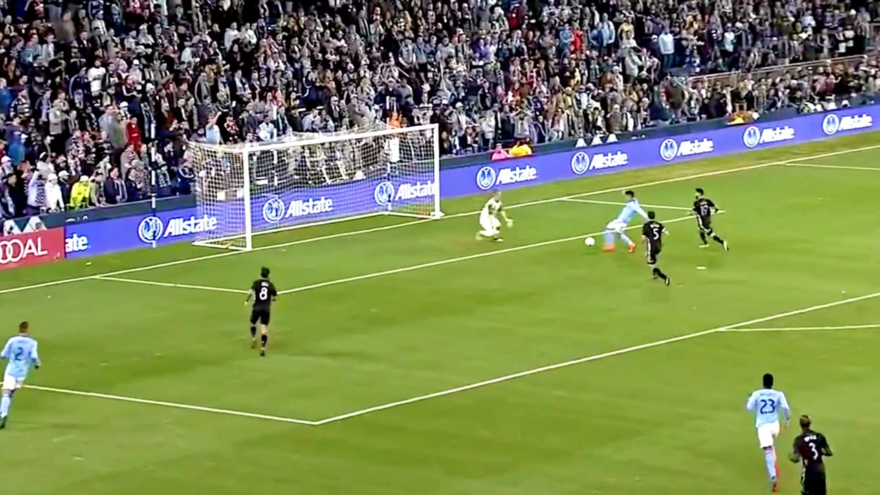 En un mano a mano frente al portero del Sporting KC, Tim Melia, el 'crack' sudamericano define magistralmente para el 2-0 de su equipo.
