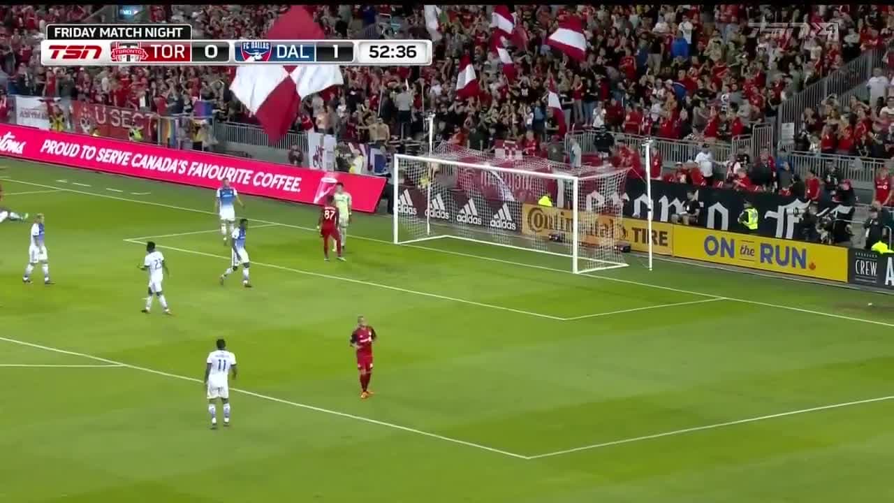 Peligroso disparo de Ryan Telfer que acaricia el palo, se le niega el gol a Toronto
