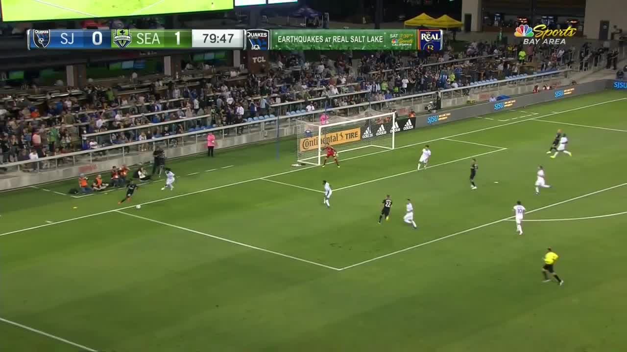 Peligroso punterazo de Chris Wondolowski que pasa cerca de la portería de Stefan Frei