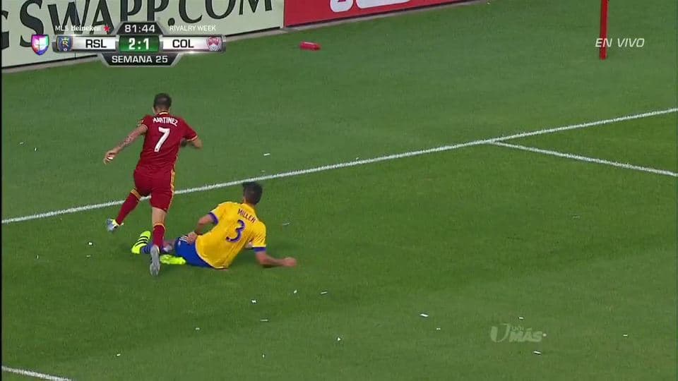 Penalti!! Falta de Eric Miller sobre Juan Manuel Martínez dentro del área on August 26, 2016