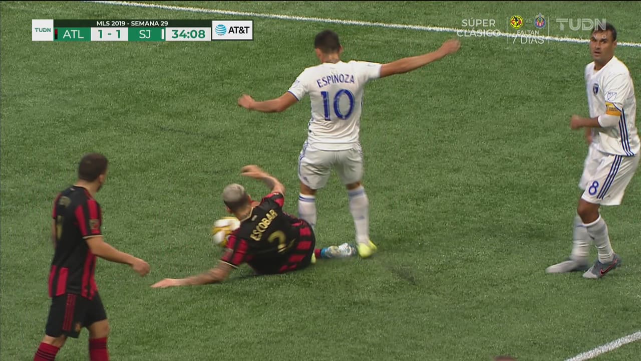 Tras haber provocado el gol del empate ante el Atlanta United, el ‘10’ de San José perdió la cabeza tras una artera falta sobre el venezolano al 34’.