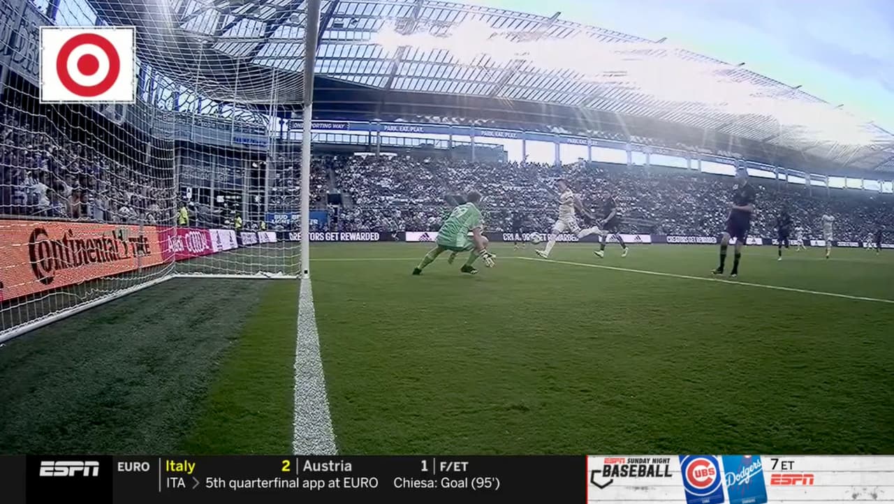 El mediocampista de LAFC, Corey Baird, no pudo vencer al portero de Sporting Kansas City y se perdió el segundo gol para su equipo.