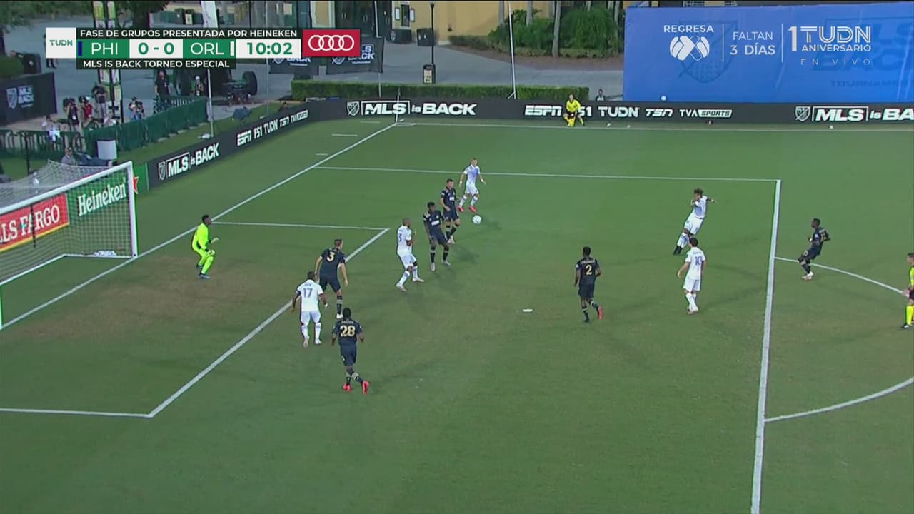 El volante brasileño de Los Leones agarró en el aire la pelota, pero se fue desviada, muy cerca del palo derecho del arco del Philadelphia Union.