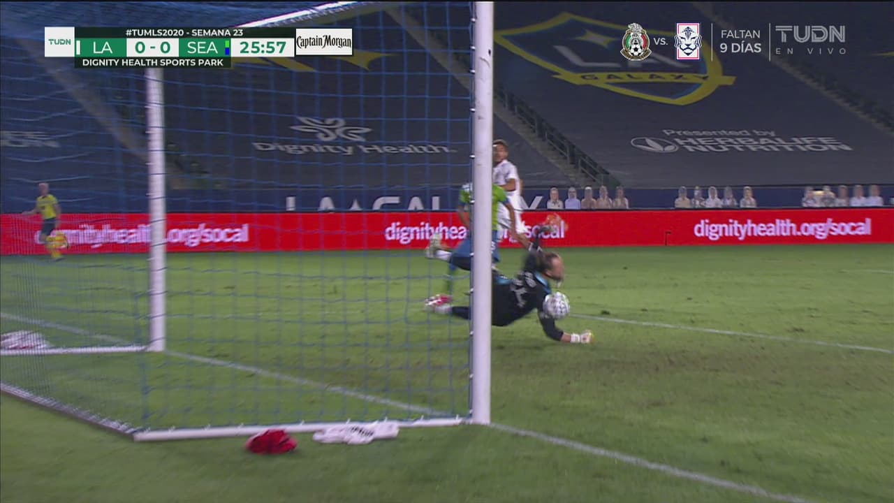 El delantero del cuadro de Los Ángeles culminó un contragolpe con un remate cruzado, que alcanzó a desviar el portero del Sounders.