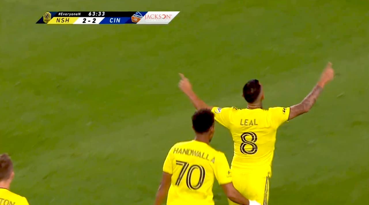 El mediocampista costarricense Randall Leal hizo una joya de gol y le dio el empate definitivo a Nashville SC ante FC Cincinnati por 2-2 al minuto 64.