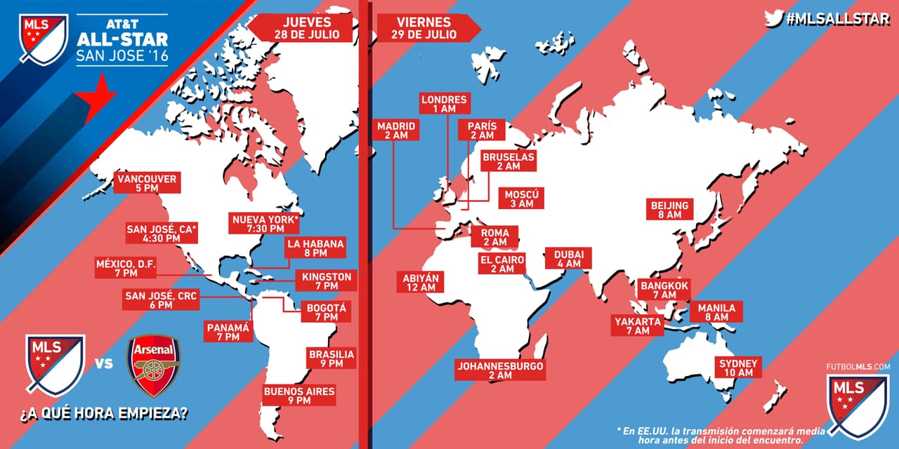 El AT&T MLS All-Star Game 2016 reunirá a los mejores jugadores de la Major League Soccer cuando el Equipo de las Estrellas de la MLS reciba al Arsenal FC de la Premier League inglesa. Será la primera vez que los Gunners participen en el MLS All-Star Game, pero será la novena ocasión en que las Estrellas de la MLS se enfrenten a un club de la Premier League.