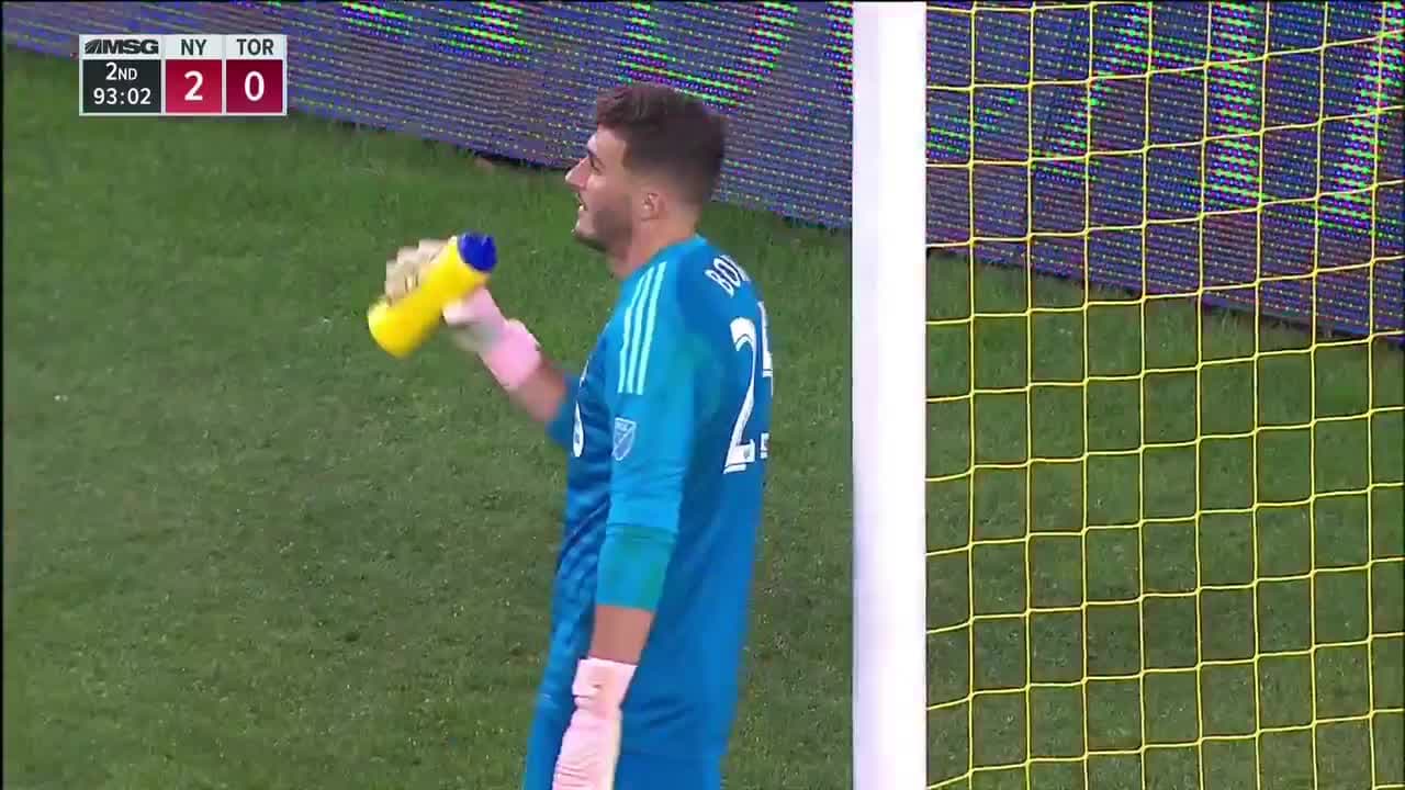 El mediocampista estadounidense, aprovechó la caída del zaguero rival tras el pase de Bradley Wrigth-Phillips, y define de 'sombrerito' para el 2-0.