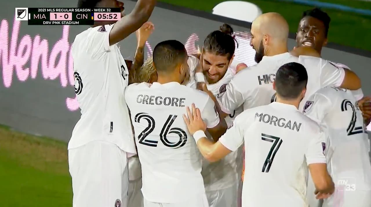 El mediocampista mexicano corrió a toda velocidad, rescató el balón y mandó un excelso servicio que conectó Federico Higuaín para adelantar a Inter Miami por 1-0 ante FC Cincinnati.
