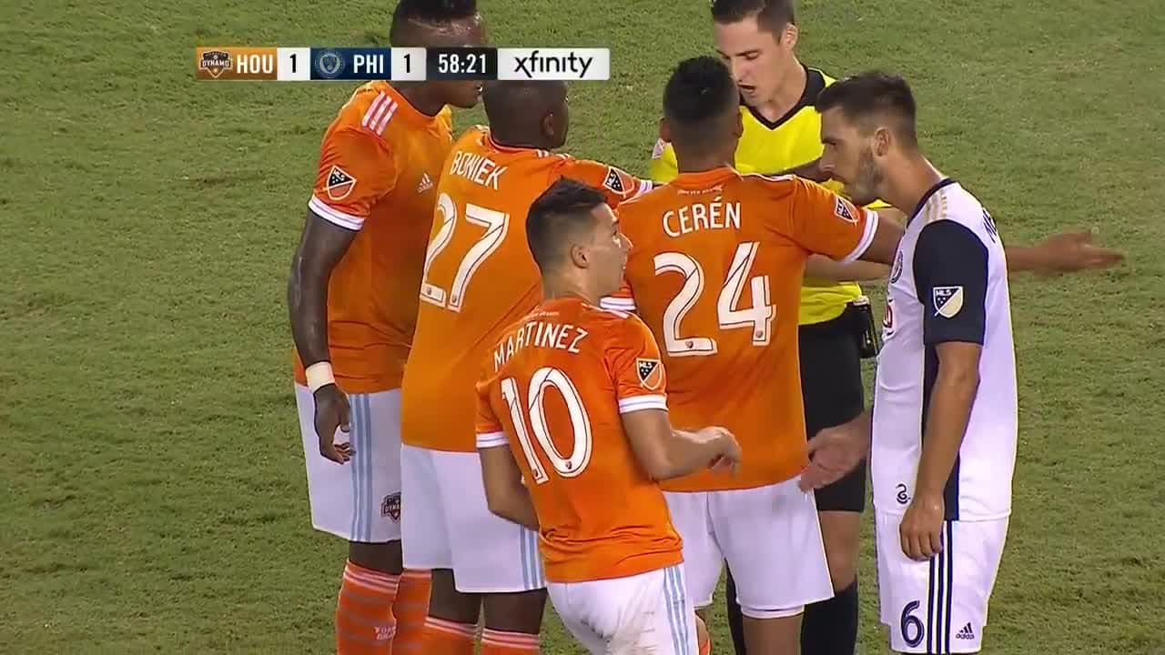 ¡Roja directa para Tomás Martínez! Se va a las regaderas por una fuerte entrada sobre Auston Trusty