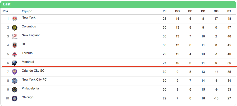 En la Conferencia del Oeste lucha siete equipos en ocho puntos; en el Este clasifica NYRB.