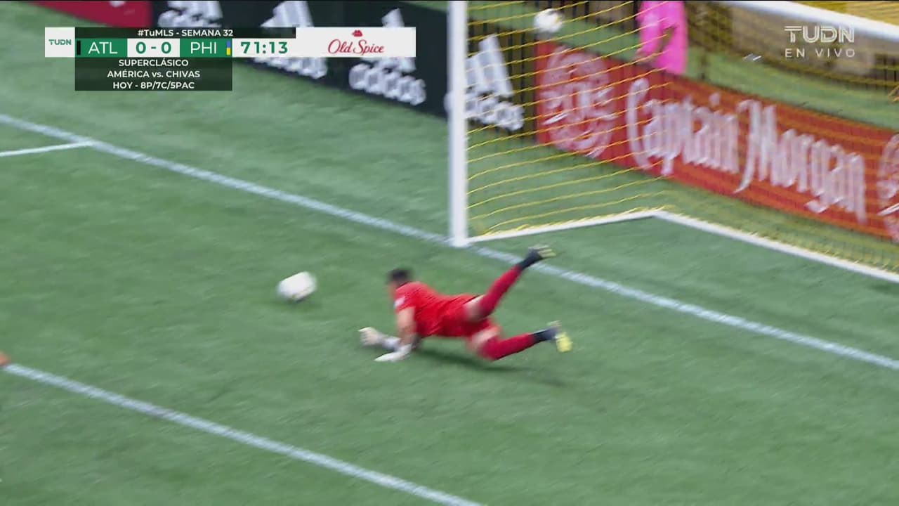 El delantero del Union recibe el pase filtrado y se acomoda en el área para rematar, pero le pega al poste.