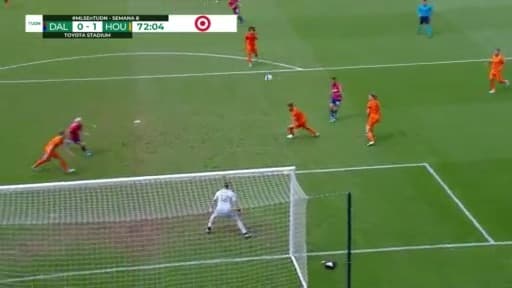 El atacante la prendió de primera, pero le pega muy abajo y la envía por arriba ante Houston.