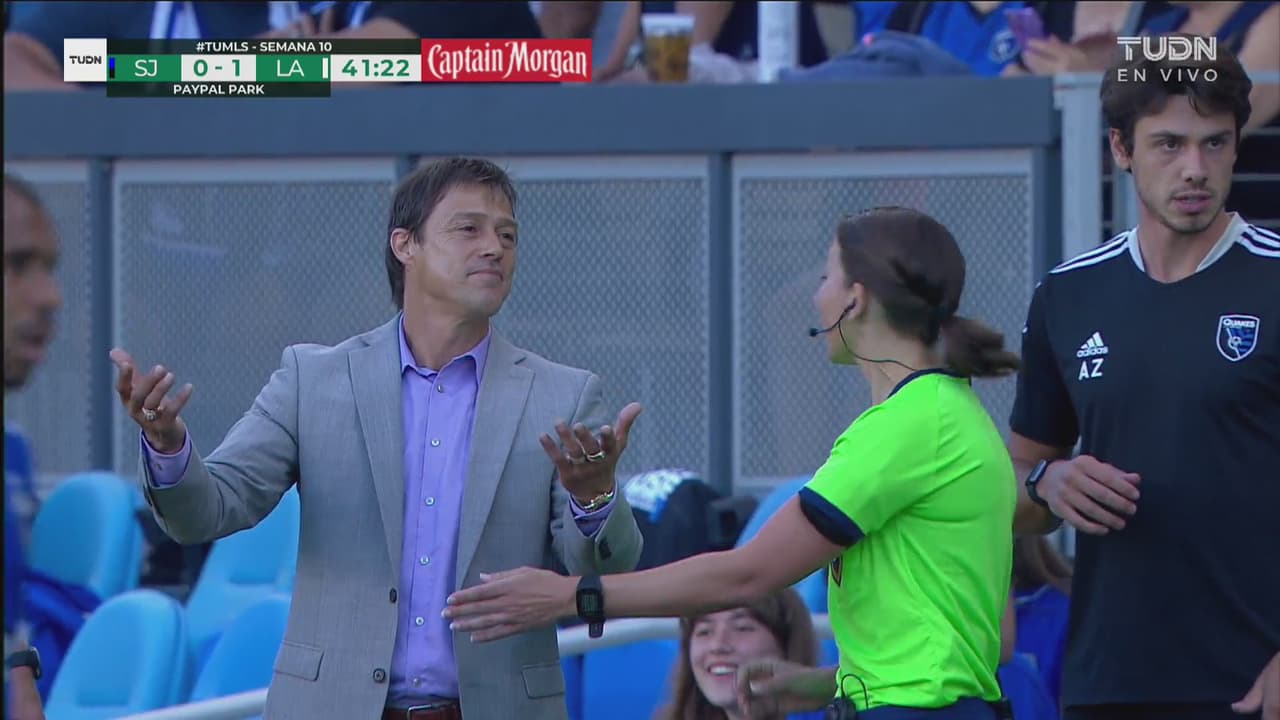 El DT del Earthquakes recibió la tarjeta por sus reclamos y luego se molestó con el estratega del LA Galaxy.