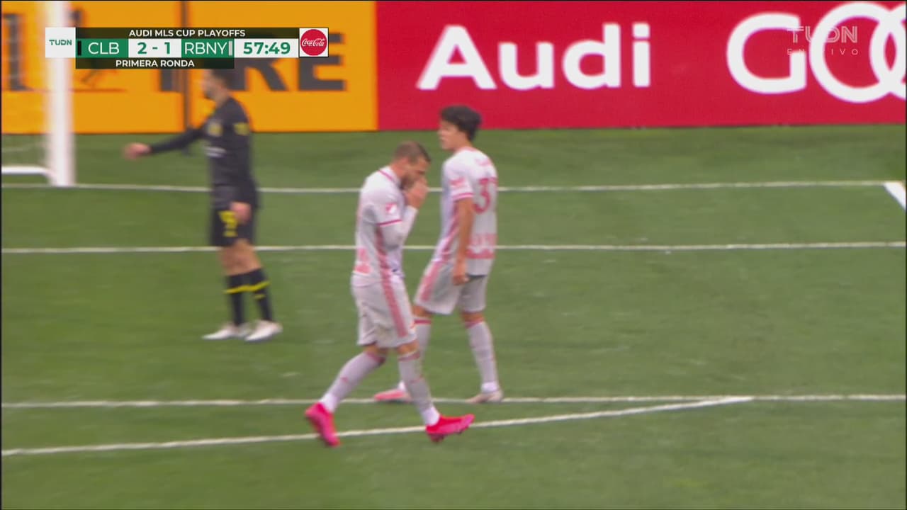El atacante de NY Red Bulls trató de larga distancia y se va desviado, al 58’.