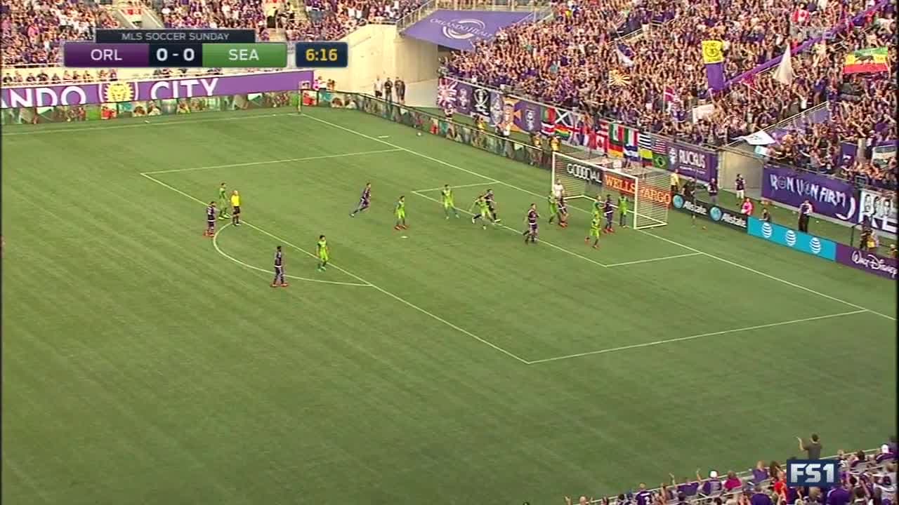 El volante inglés aprovecha la floja marca de los Sounders en un saque de esquina para abrir la cuenta.