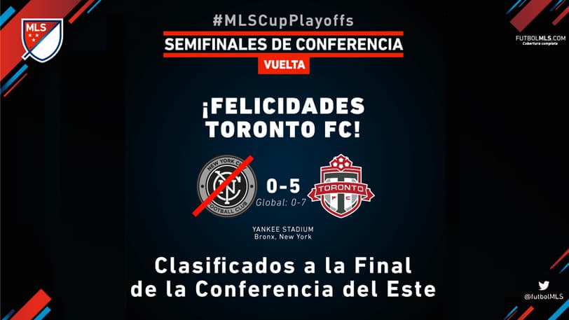 Con este resultado, Toronto está avanzando a la Final de la Conferencia del Este (Semifinales de la MLS Cup), con un marcador global de 3-0. Además, este gol de visitante obliga a que NYCFC tenga que anotar cuatro goles para avanzar.