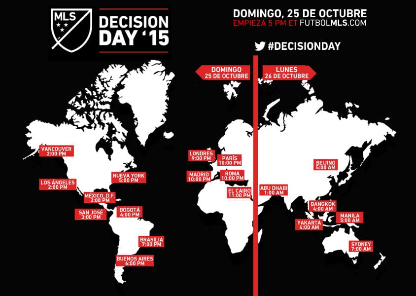 FutbolMLS.com será el destino ideal para complementar lo que veas por TV: estaremos ofreciendo los detalles minuto a minuto además de la más completa cobertura interactiva a través de @FutbolMLS y el Twitter Wall que encontrarán en la parte baja de nuestro homepage. Allí encontarán todo lo que los especialistas escriban sobre #DecisionDay.