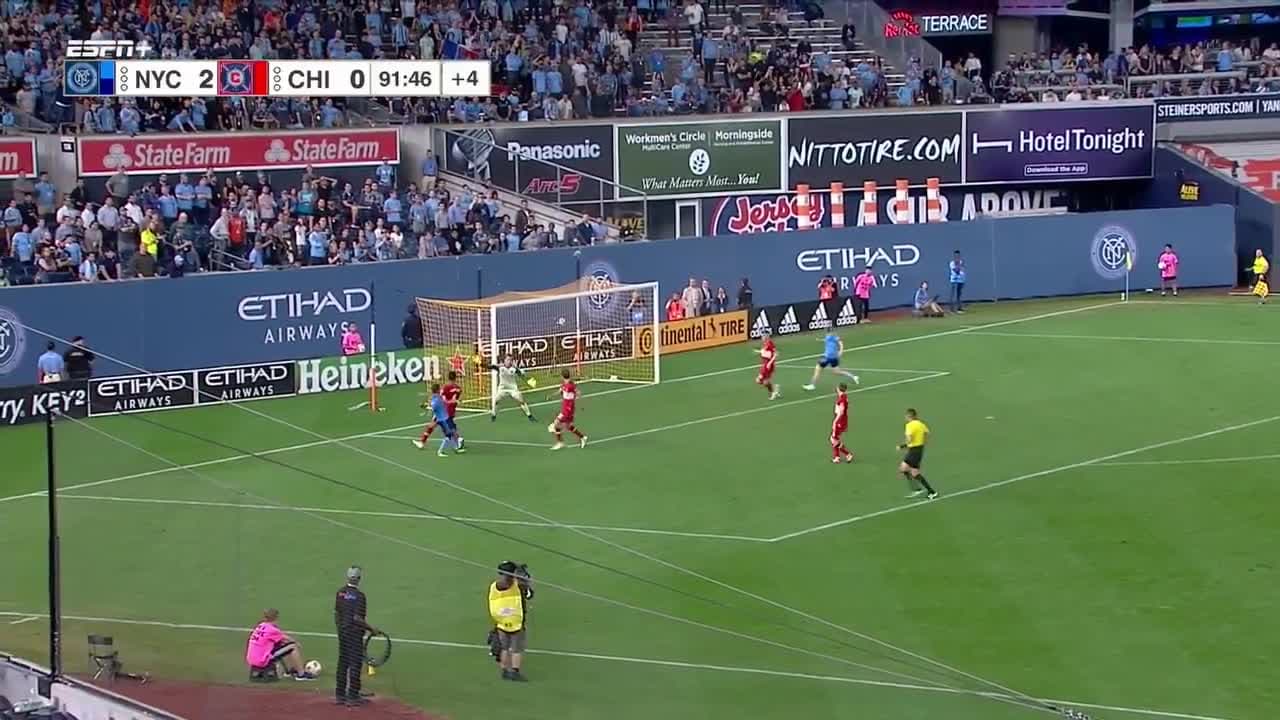 Stefan Cleveland ataja un potente balón con el pecho y evita el segundo gol de David Villa