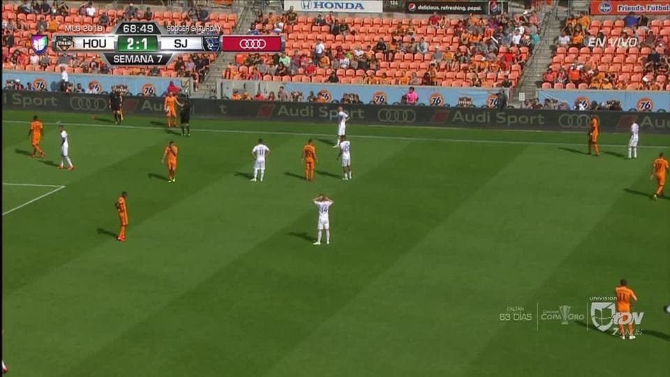 Tarjeta amarilla. El árbitro amonesta a Adam Lundkvist de Houston Dynamo