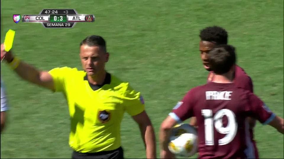 Tarjeta amarilla. El árbitro amonesta a Ãdgar Castillo de Colorado Rapids