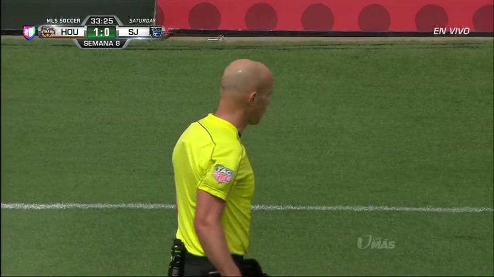Tarjeta amarilla. El árbitro amonesta a Alberth Elis de Houston Dynamo