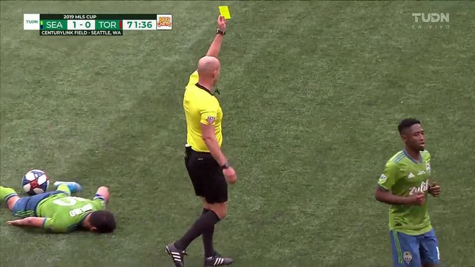 Tarjeta amarilla. El árbitro amonesta a Alejandro Pozuelo de Toronto FC on November 10, 2019