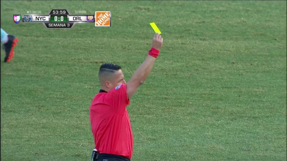 Tarjeta amarilla. El árbitro amonesta a Alexander Ring de New York City FC