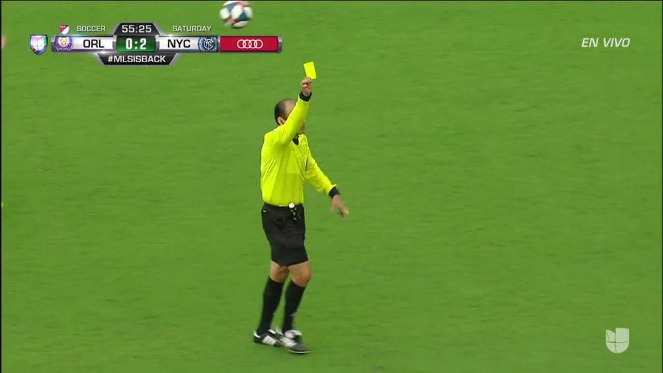 Tarjeta amarilla. El árbitro amonesta a Alexander Ring de New York City FC
