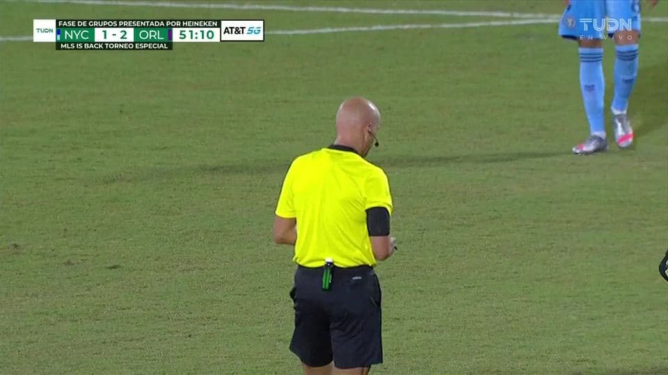Tarjeta amarilla. El árbitro amonesta a Alexander Ring de New York City FC on July 14, 2020