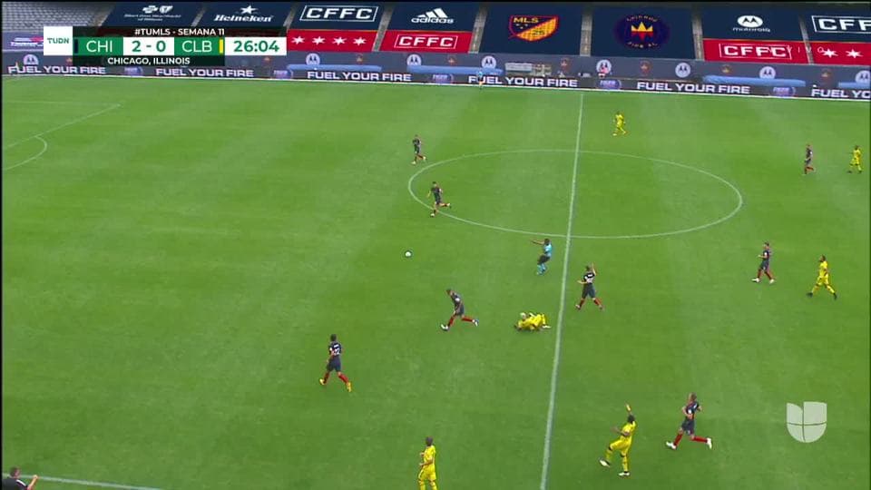 Tarjeta amarilla. El árbitro amonesta a Álvaro Medrán de Chicago Fire FC on September 12, 2020