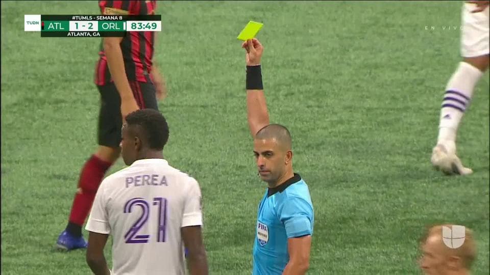 Tarjeta amarilla. El árbitro amonesta a Andrés Perea de Orlando City SC