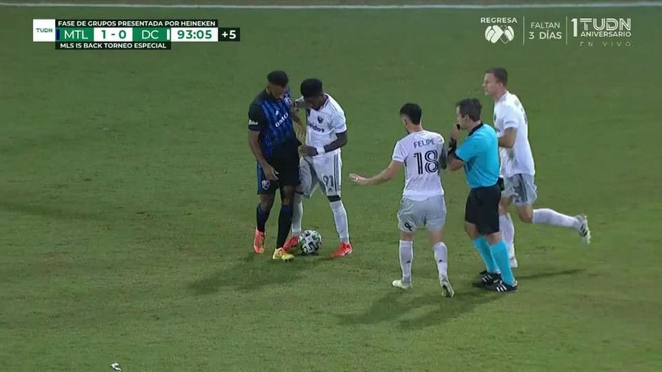 Tarjeta amarilla. El árbitro amonesta a Anthony Jackson-Hamel de Montreal Impact on July 21, 2020