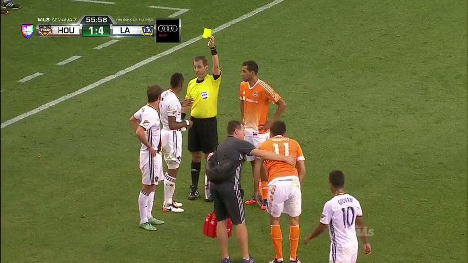 Tarjeta amarilla. El árbitro amonesta a Ashley Cole de LA Galaxy on April 15, 2016